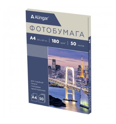 —Фотобумага односторонняя, А4, 50л, глянцевая, 180 г;м2, AL11090