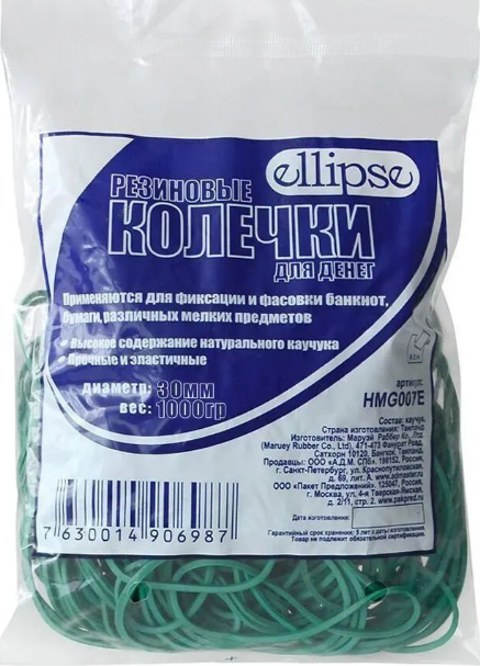 Резинки для денег Ellipse, зеленые, 1000 г 30 мм, HMG001E
