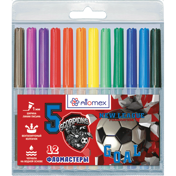 —Фломастеры 'Attomex. Football' 12 цветов с вентилируемым колпачком, 5081441