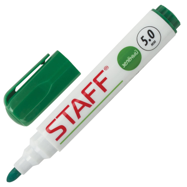 Маркер для доски STAFF Manager зеленый , с клипом, кругл.наконечник 5 мм, 151494