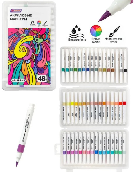 Маркеры акриловые, ASMAR, 48 цветов, AR-984-48