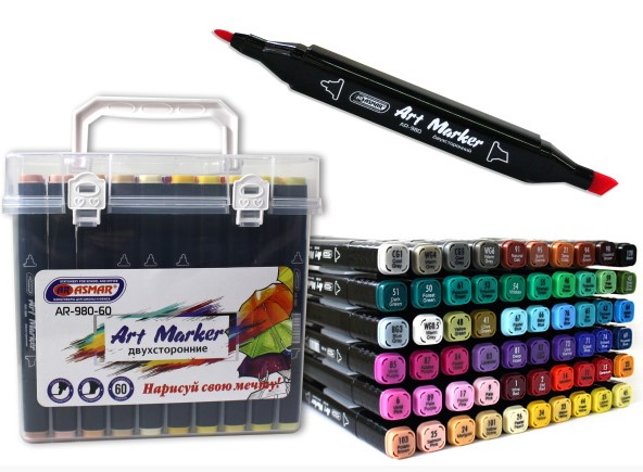 —ART MARKER 'ASMAR', (скетчмаркер), двухсторонние, 60 цветов, AR-980-60