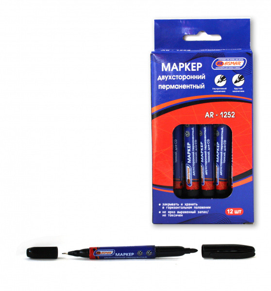 —Маркер перманентный ASMAR, двухсторонний, тонкий, цвет черный, AR-1252
