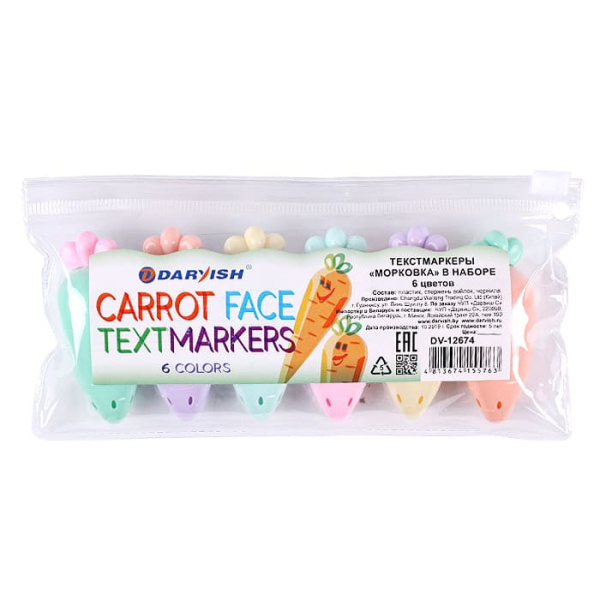 Текстмаркеры 'Морковка' 6 цв., DV-12674