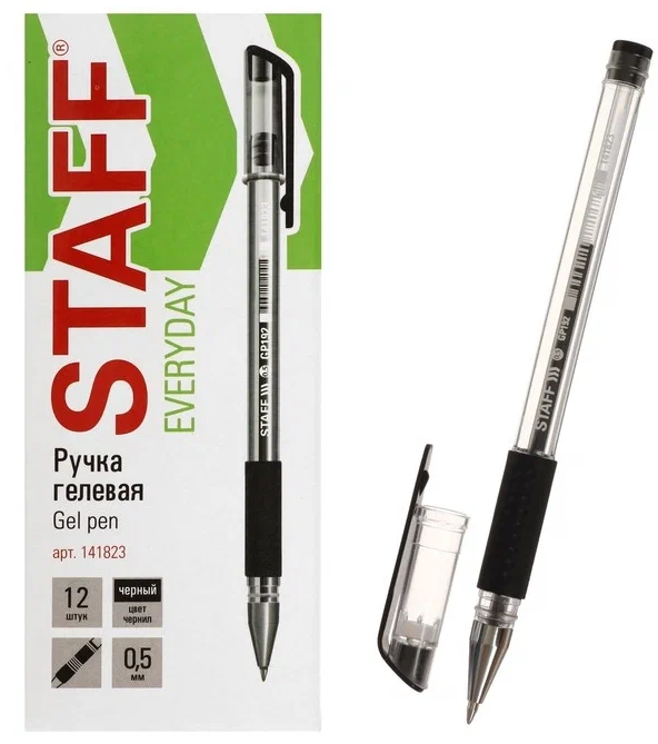 —Ручка гелевая 'STAFF' с грипом, 0,5 мм, линия 0,35 мм, цвет черный, 141823