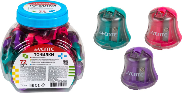—Точилка для карандашей 'deVENTE' 1 отверстие, с контейнером, пластмассовая, 4071409