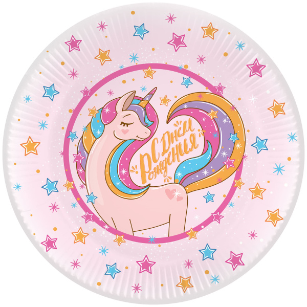 Набор тарелок бумажных 'Волшебный единорог, С Днем Рождения!', 6 шт.;уп. 18 см., европодвес, 77129