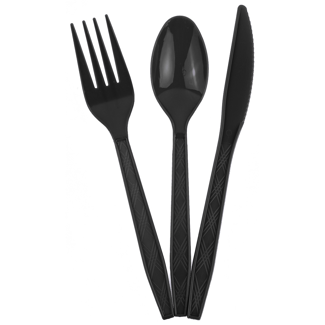 —Набор столовых приборов, Вилки, Ложки, Ножи- 3~6 шт, Черный, 15 см, 18 шт. в упак. , 6231849