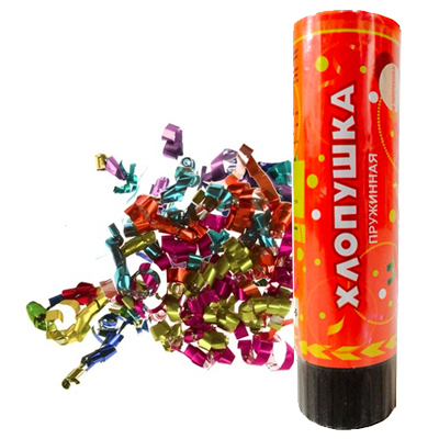 Хлопушка пружинная (6;15 см), серпантин фольга , ассорти, 8116