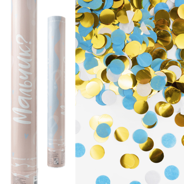 —Пневмохлопушка (16;40 см), гендер пати, МАЛЬЧИК, белый, голубой, золото, 923008