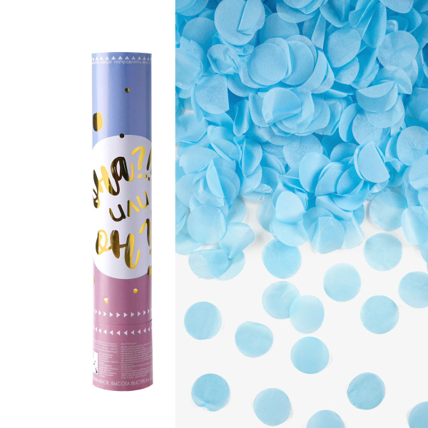 —Пневмохлопушка (12;30 см), Гендер пати, круги тишью, голубой 1 шт, 823152