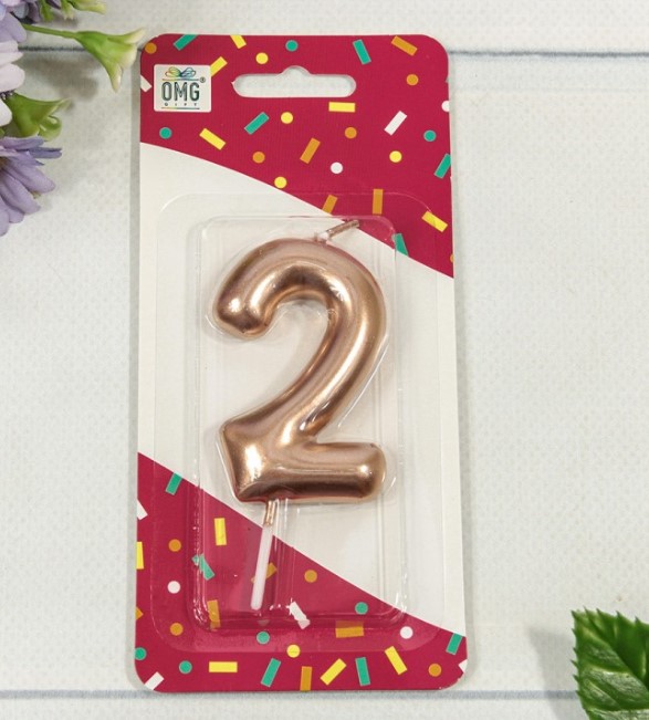 Свеча для торта Цифра 2 Бронзовый 6 см, 20010-91/2