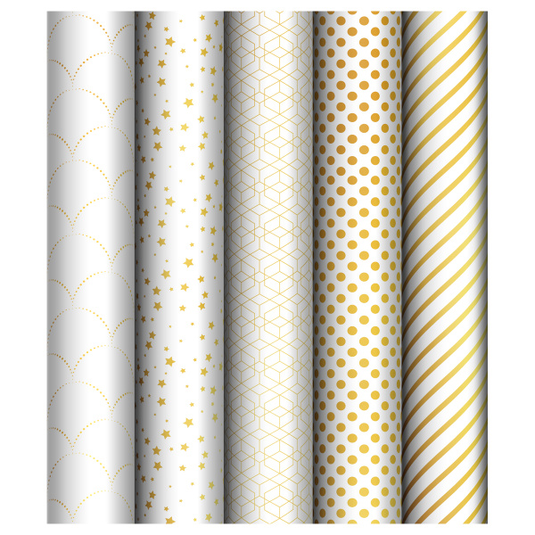 —Упаковочная бумага глянц. 70х100 см, MESHU 'Pattern on white', 80г;м2, ассорти 5 дизайнов, MS_53492