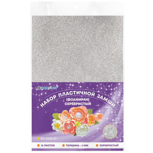 Фоамиран Darvish А4, 10 л с блёстками, серебро, DV-8200-02