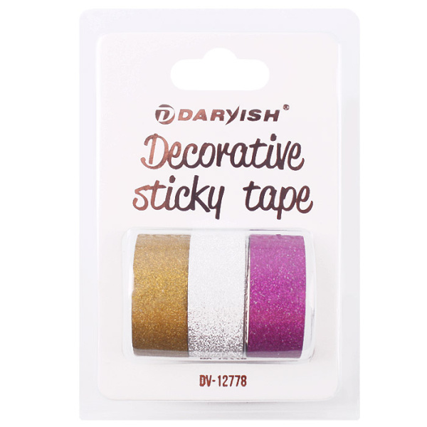 —Лента декоративная липкая 'Darvish', 15 мм х 3 м, (3 шт;уп), блёстки ассорти, DV-12778