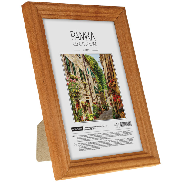 Рамка деревянная 10х15 см, OfficeSpace, №1, янтарь, РД_6314