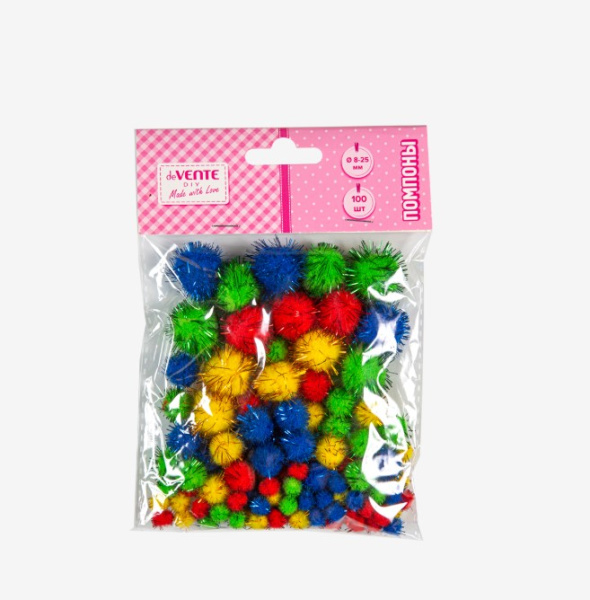 Набор помпонов для творчества "deVENTE" 100 шт, с блестками ассорти размеров и цветов, 8000054