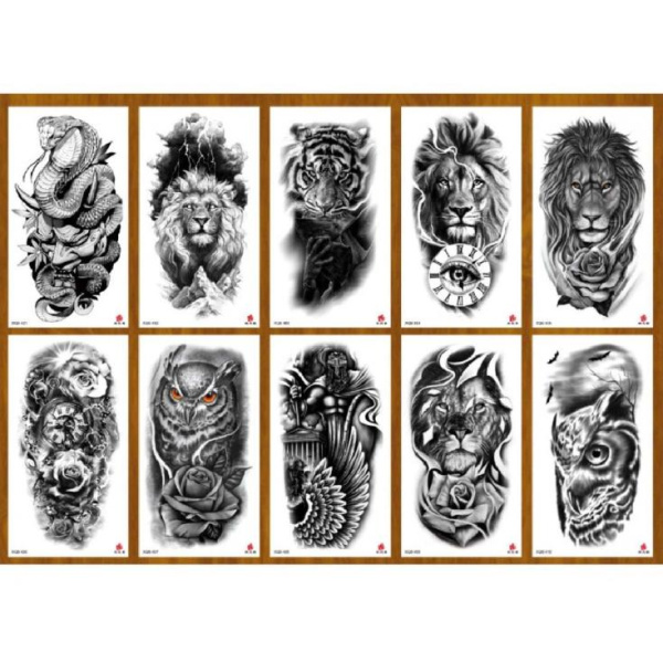 —Татуировка-наклейка (11,4х 21 см) Животные ч;б, ТА-1758