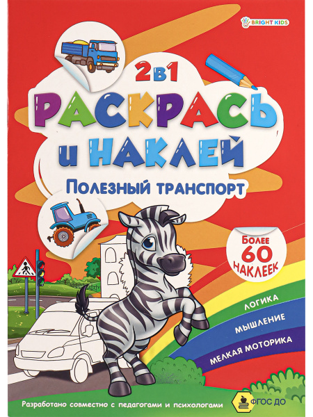 РАСКРАСЬ И НАКЛЕЙ, ПОЛЕЗНЫЙ ТРАНСПОРТ А4, Р-2054