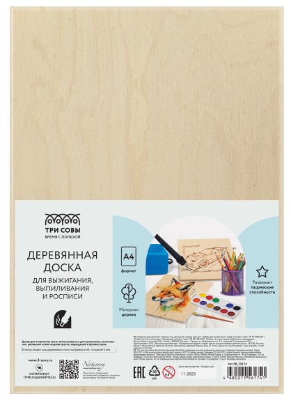 —Деревянная доска для выжигания, выпиливания, росписи по дереву ТРИ СОВЫ, 2 шт, А4, HB_58174
